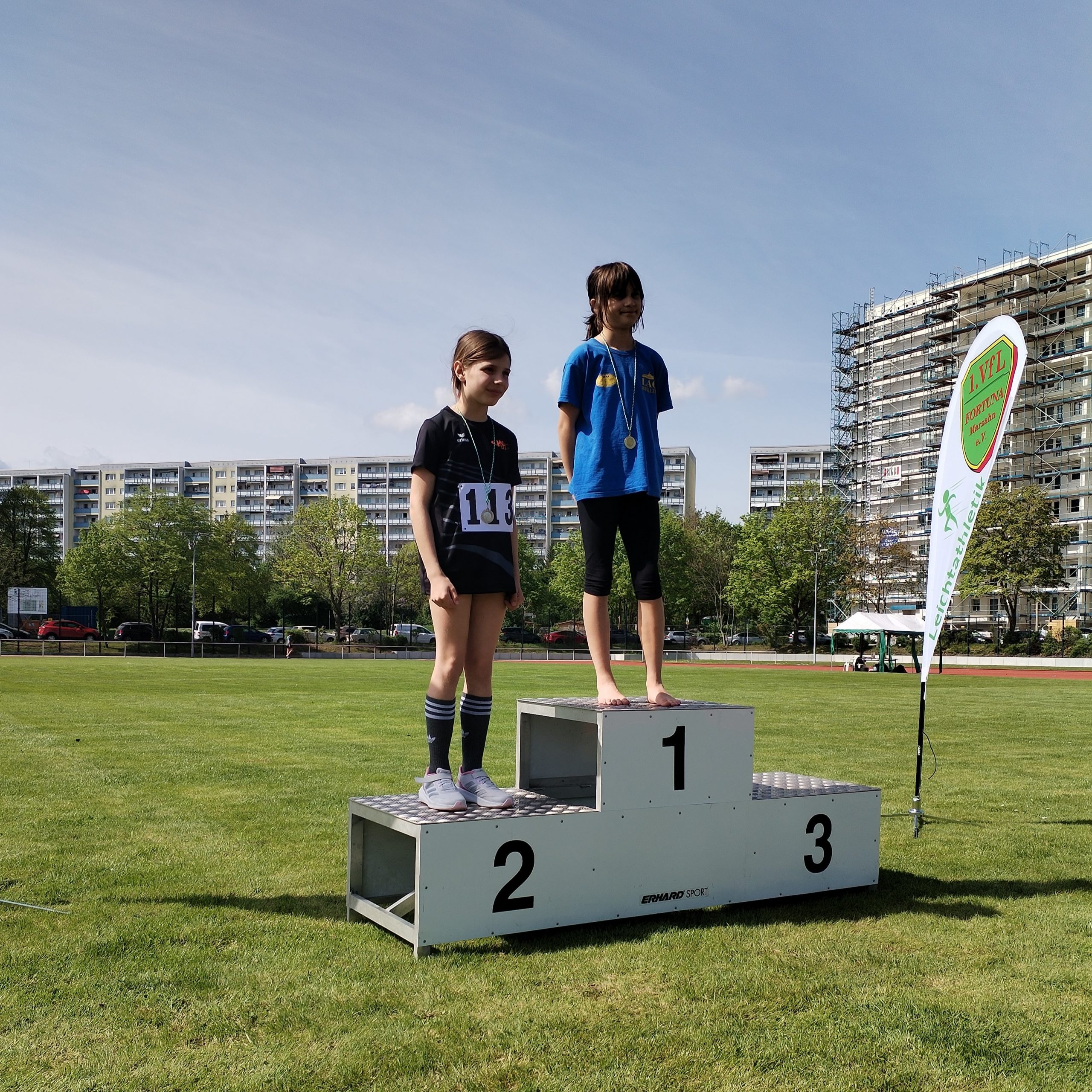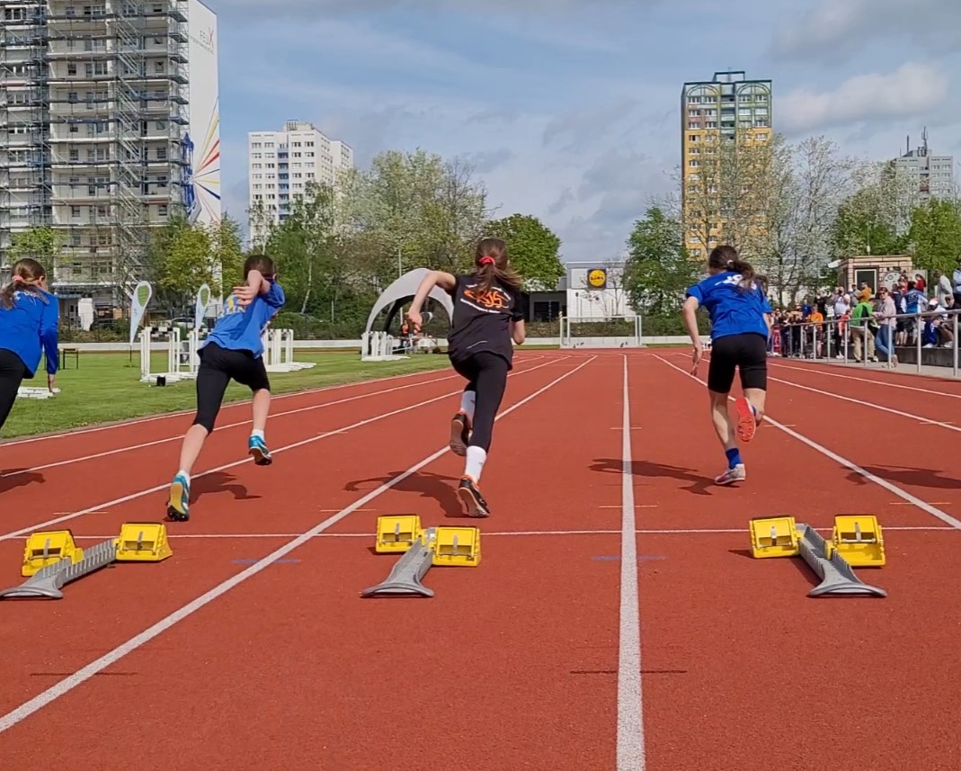 Schließlich lief Mariza (16 Jahre) auf der in Berlin-Marzahn traditionellen „krummen Strecke“ über 150 m in einer guten Zeit von 22,90 sec. auf den 3. Platz in ihrem Jahrgang.
