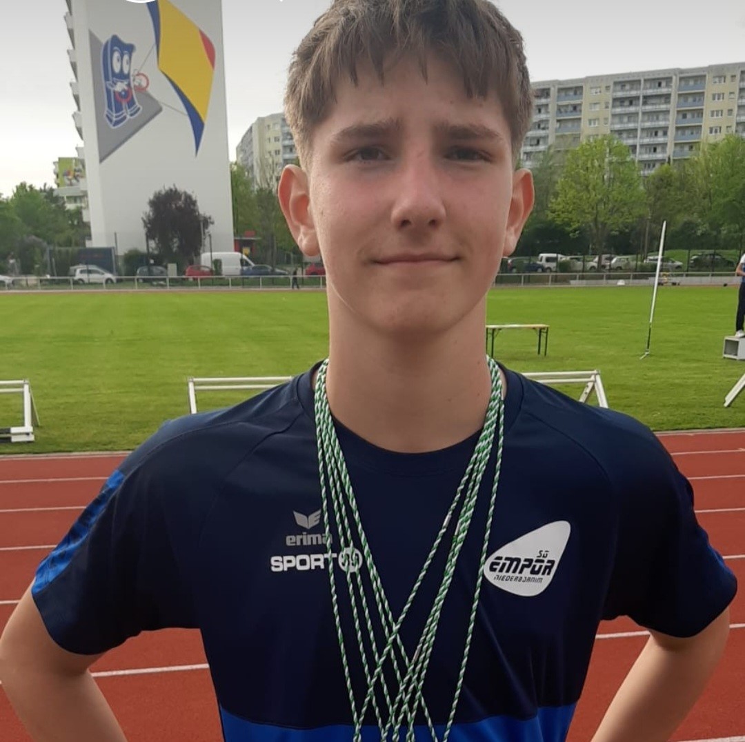 Auch Mio (14 Jahre) lieferte einen sehr guten Wettkampf ab und lief erstmals über 100 m in einer beachtlichen Zeit von 13,60 sec. auf einen guten 10. Platz. Auch im Weitsprung konnte Mio mit 4,78 m eine neue persönliche Bestleistung aufstellen und belegte einen sehr guten 6. Platz.