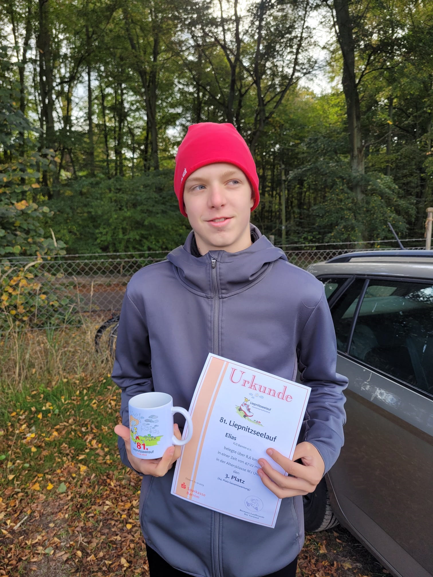 Elias wagte sich an die 8,6 km und konnte sich in der Altersklasse der männlichen Jugend U16 den 3. Platz sichern.
