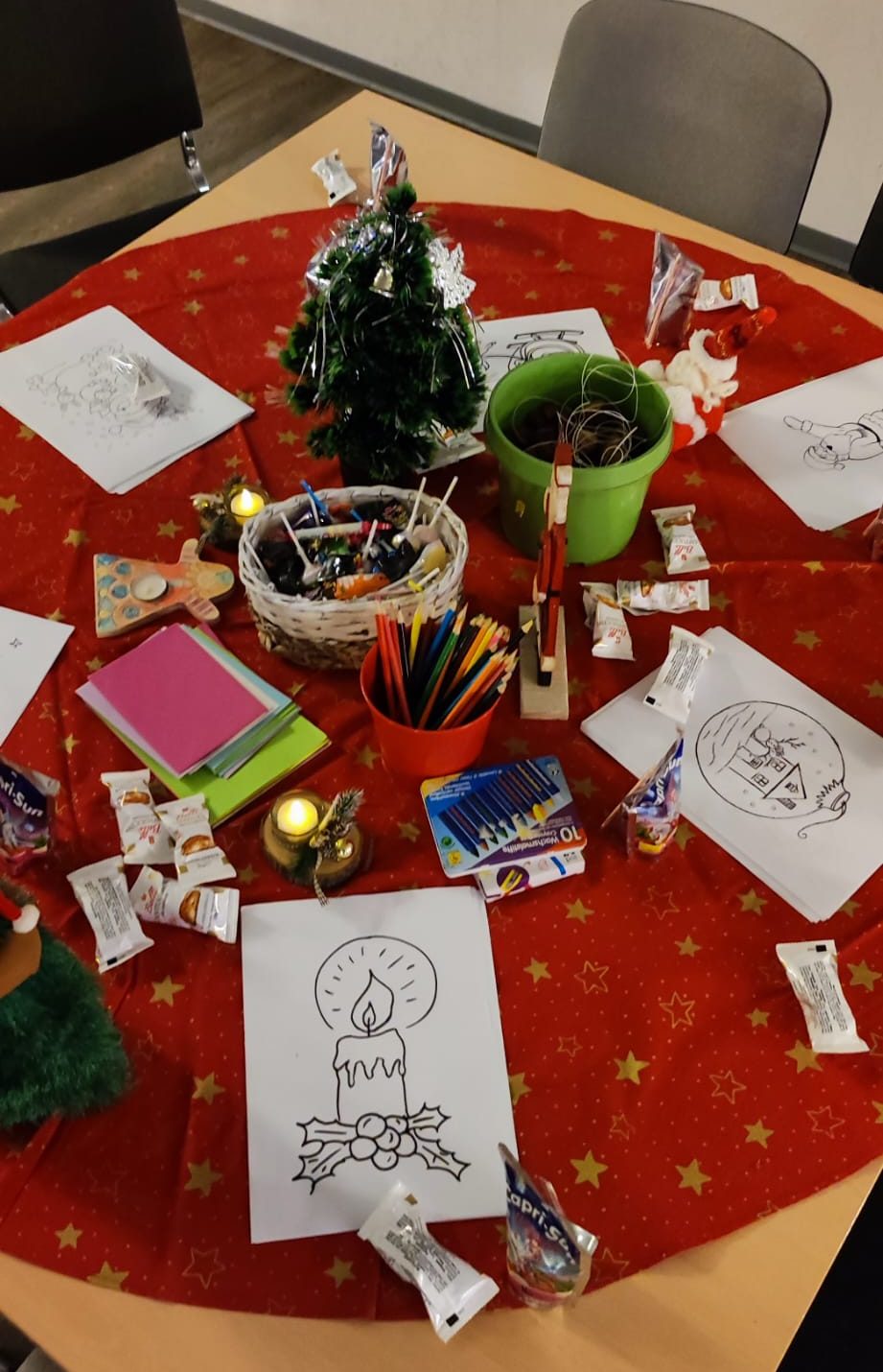 Getränke mit. Die gemütliche Runde wurde bei weihnachtlicher Musik zum Austausch und Basteln